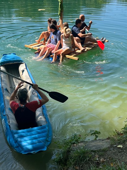 An einem spätsommerlichen Tag erlebten wir als Team mit Roland zusammen ereignisreiche Stunden. Roland hat uns kompetent und spielerisch in das Flossbauen eingeführt. Tagesziel war mit einer tragfähigen Konstruktion übers Wasser zu gleiten.